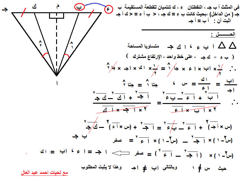 الف شكر يا استاذ احمد حل جميل ومنسق لكن فى الحل الاول لماذا لم نستخدم القوس الثانى( أ جـ تربيع ــ أ ء تربيع ) نجعله يساوى صفر ارجو توضيح اكثر