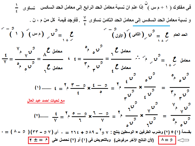 ارجــ ـــ ــوا حل المسألتين فى الجبــ ــر .. ( نظرية ذات الحــ ـدين )( هام )