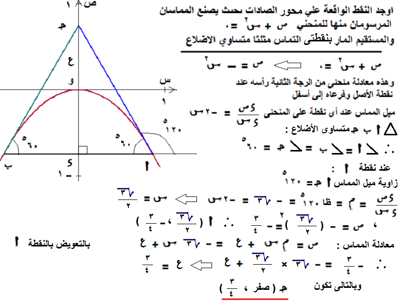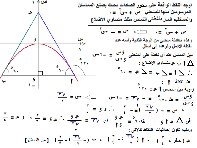 اوجد النقط الواقعة علي محور الصادات بحيث يصنع المماسان المرسومان منها للمنحني ص+ س تربيع =0