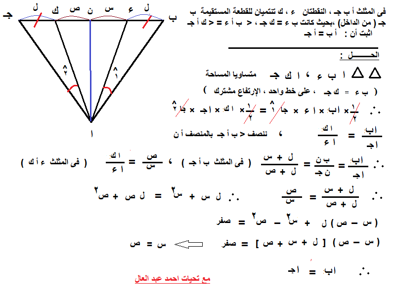 وإليك أخى الحل باستخدام منصف الزاوية الملف المرفق 86032 |