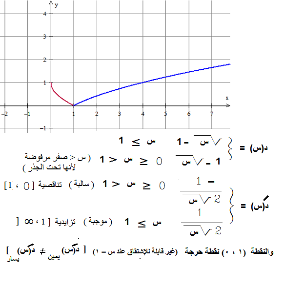 ,]آسف للمرة الثانية ، لأنه من التعريف النقطة الحرجة هى النقطة التى عندها المشتقة = صفر أو أن الدالة غير قابلة للإشتقاق عد هذه النقطة ، وعليه فالنقطة( 1 ، صفر ) نقطة حرجة لأنه ينطبق عليها الشرط الثانى احمد عبد العال |