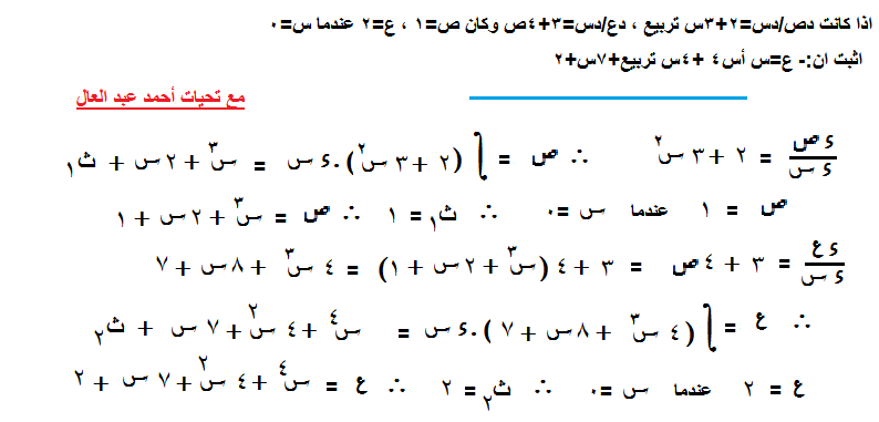 اذا كانت دص/دس=2+3س تربيع , دع/دس=3+4ص وكان ص=1 , ع=2 عندما س=0
