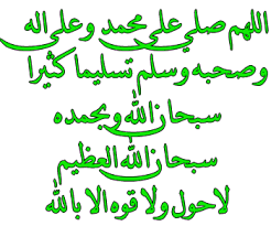 اللهم صلى و سلم و زد و بارك على سيدنا محمد و على آله و صحبة و من تبعه الى يوم الدين و سلم تسليما كثيرا عدد خلقك و زنة عرشك و مداد كلماتك و عدد ما ذكرة الذاكرون و غفل عنة الغافلون و عدد كل شىء يعد عندك و كما تحب ان يصلى علية و كما ينبغى ان يصلى علية |