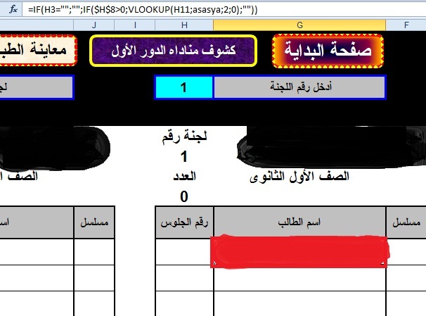 دا صورة من مكان المعادلة هي في اسم الطالب مظلله باللون الأحمر ولكن ما اقصدي ما معني الجزء الخاص بقلعدة if اللي هو مكتوب بالشكل ده if(h3;"";"")