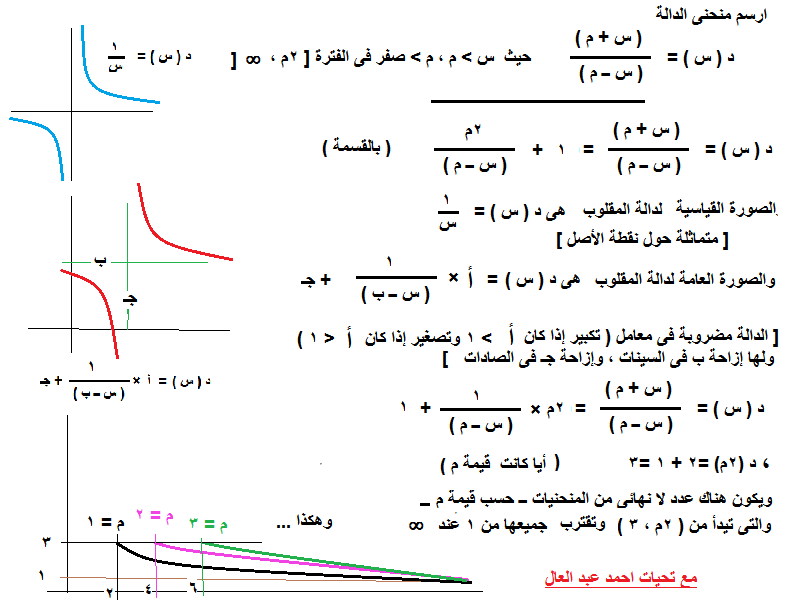 إليك عزيزى الحل ، و أحيلك لبرنامج رسم الدوال الحقيقية المقررة فى رياضة 1 ــ حبر بالمنتدى ولكن فى جبر رياضة 1 ويمكنك رسم الدالة عليه بعد أن تضع كل مرة قيمة م ، قد يفيدك هذا البرنامج فى حل المعادلات بيانيا الملف المرفق 79377 |