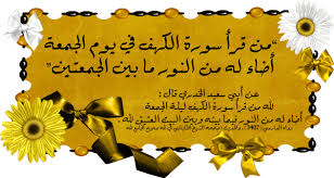 عطر الله جمعتك برياحين الجنة وظللك باغصان بساتينها وسقاك من زلال كوثرها وجعلك من المغتنمين لو قتها بكثره الصلاة على الحبيب التالين لسورة الكهف الناجين من يوم النفخ والحشر الثابتين على الحق حتى لقاء الرحمن |