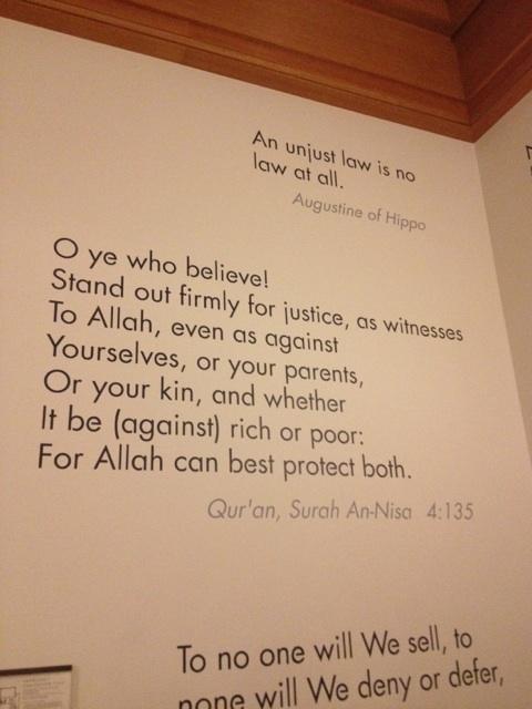 نشر المبتعث السعودي "عبد الله الجمعة " عبر موقع التواصل الاجتماعي تويتر صورة وفيديو للأية رقم 135 من سورة " النساء" والتي نقشتها كلية القانون بجامعة هارفارد على احدى جدران الكلية بعد ترجمتها إلى الإنجليزية ضمن عبارات و اقوال من مختلف انحاء العالم تعبر عن العدالة والآية الكريمة المعنية هي قول الله عز وجل من سورة النساء : {يَا أَيُّهَا الَّذِينَ آمَنُوا كُونُوا قَوَّامِينَ بِالْقِسْطِ شُهَدَاءَ لِلَّهِ وَلَوْ عَلَى أَنْفُسِكُمْ أَوِ الْوَالِدَيْنِ وَالْأَقْرَبِينَ إِنْ يَكُنْ غَنِيًّا أَوْ فَقِيرًا فَاللَّهُ أَوْلَى بِهِمَا فَلَا تَتَّبِعُوا الْهَوَى أَنْ تَعْدِلُوا وَإِنْ تَلْوُوا أَوْ تُعْرِضُوا فَإِنَّ اللَّهَ كَانَ بِمَا تَعْمَلُونَ خَبِيرًا} [النساء: 135] http://www.youtube.com/watch?feature...&v=wNsFZ-2V3h8 https://pbs.twimg.com/media/A7Xd_R6CMAACSUv.jpg:large |
