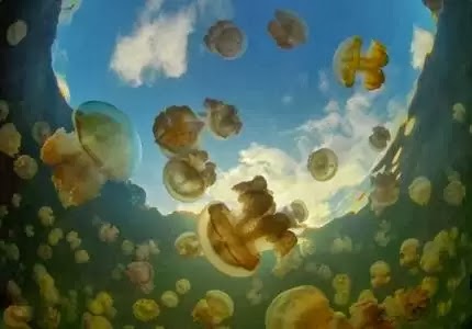 في الجزء الشرقي من جزيرة الغابات الكثيفة (إيسا مالك ESA-Malk) وهي جزء من أرخبيل من الجزر الصخرية في (جمهورية بالو (Palau State غرب المحيط الهادئ، تقع بحيرة مذهلة يعيش فيها عدد هائل من قناديل البحر.يعيش في هذه البحيرة نوعين فقط من قناديل البحر وهي الذهبية والقمرية.مياه بحيرة قنديل البحر مالحة في حد ذاتها وهي موصولة بالمحيط الهادئ عبر شبكة من الشقوق وثلاثة أنفاق صغيرة تعبر من خلال الحجر الجيري المحيط بها. ومع ذلك، فإن البحيرة معزولة تماما عن المحيط و الظروف المعيشية فيها مختلفة تماماً عن ظروف المحيط. ولذلك، فإن القناديل الذهبية والقمرية التي تعيش في البحيرة، هي مختلفة جدا من قريباتها التي تعيش في المحيط والتي تبعدها 200 متر فقط.في ظل غياب المفترسات تتكاثر هذه القناديل بكميات رهيبة، إذ يعيش في البحيرة التي تبلغ مساحتها 0,057 كيلومترا مربعا فقط وعمقها حوالي 50 متر، ما يقرب من 2 مليون قنديل بحر. ولكثرة عددها يسهل مشاهدتها على سطح مياه البحيرة، حتى لو كنت على متن طائرة. ويمكن لهواة الغوص السباحة بأمان في البحيرة والاستمتاع بمشاهدة قناديل البحر دون الخوف من التعرض للسعاتها الحارقة، فهي لم تتعود على المهاجمة.تنقسم مياه البحيرة بوضوح إلى طبقتين – العلوية والسفلية، وهي لا تختلط أبداً، وتكون الطبقة العلوية مشبعة بالأكسجين خلافا عن الطبقة السفلية الواقعة على عمق 15 متراً، فالطبقة العلوية تتجدد بفضل تدفق المياه العذبة إليها باستمرار عن طريق الأنفاق التي تربط البحيرة بالمحيط. ولذلك، تجد جميع قناديل البحر وغيرها من الحيوانات التي تعيش في البحيرة، تتمركز في الطبقة العلوية، أما في الطبقة السفلية حيث تقل نسبة الأكسجين، فتجد عدداً محدوداً من أنواع البكتيريا وتكون مياهها مشبعة بكبريتيد الهيدروجين، والأمونيا والفوسفات، التي تشكل خطرا على الغواصين إذ تسبب تسمماً خطيراً ينتقل مباشرة إلى الجسم من خلال الجلد.في عام 1998 ، كادت بحيرة قنديل البحر تفقد جميع سكانها الأصليين وهم قناديل البحر الذهبية. إذ بحلول شهر ديسمبر من عام 1998، انخفض عددها إلى ما يقارب الصفر. ويعتقد أن هذا الانخفاض الكبير سببه ظاهرة "النينيو"، وهي تدفق كتلة هائلة من المياه الدافئة إلى الطبقة العلوية من المحيط.وأدت هذه الظاهرة إلى ارتفاع كبير في درجة حرارة مياه البحيرة ف***ت جميع الطحالب، فلم تتمكن قناديل البحر الاستمرار والبقاء على قيد الحياة بدونها.المظهر الخلاب لقناديل البحر يجذب الكثير من السياح إلى البحيرة بهدف الغوص. وتعتبر السباحة في الحيرة آمنة كون قناديل البحر قد فقدت القدرة الشبه تامة على "اللدغ". ومع ذلك، ينصح بعض الأشخاص من ذوي الجلد الحساس أو الذين يعانون من الحساسية، باستخدام بدلات واقية.ويحظر الغوص في الطبقة السفلية للبحيرة لأن ذلك يؤدي إلى اختلاط مياه الطبقتين العلوية والسفلية، وهو أمر لا يحدث أبداً بشكل طبيعي، وقد يحدث ذلك اضطراباً في النظام البيئي للبحيرة، مما قد يؤدي إلى فقدان جميع سكانها. بالإضافة إلى ذلك، قد يتعرض الغواصون المتهورون الذين يصرون على الغوص في الطبقة السفلية حيث المياه المشبعة بكبريتيد الهيدروجين والأمونيا، لتسمم قاتل ينتقل إلى جسمهم عن طريق الجلد. إلى جانب قناديل البحر، تعيش في البحيرة المالحة بعض التماسيح المسالمة التي تفضل دائما البقاء بعيداً عن الأشخاص، ومع ذلك سجلت حالة وفاة واحدة بسبب هجوم تمساح على أحد السياح.