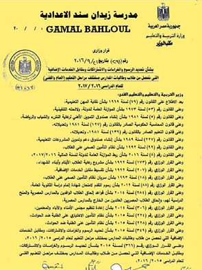 وزارة التربية والتعليم تصدر القرار رقم 291 بتاريخ 21/9/2016 بشأن الرسوم ومقابل الخدمات الإضافيـة للعام الدراسي 2017/2016 رابط التحميل http://gulf-up.com/do.php?id=160250 |
