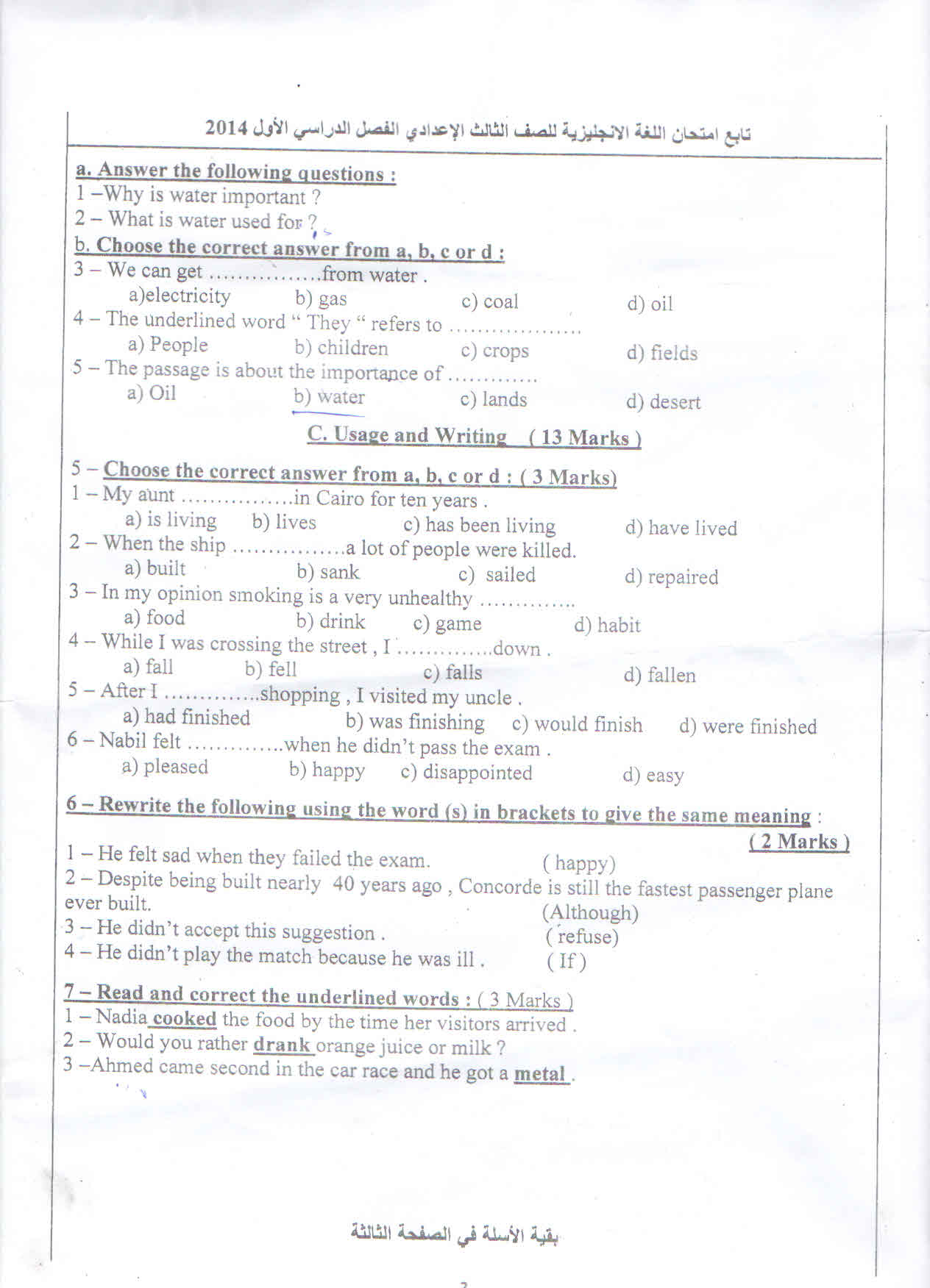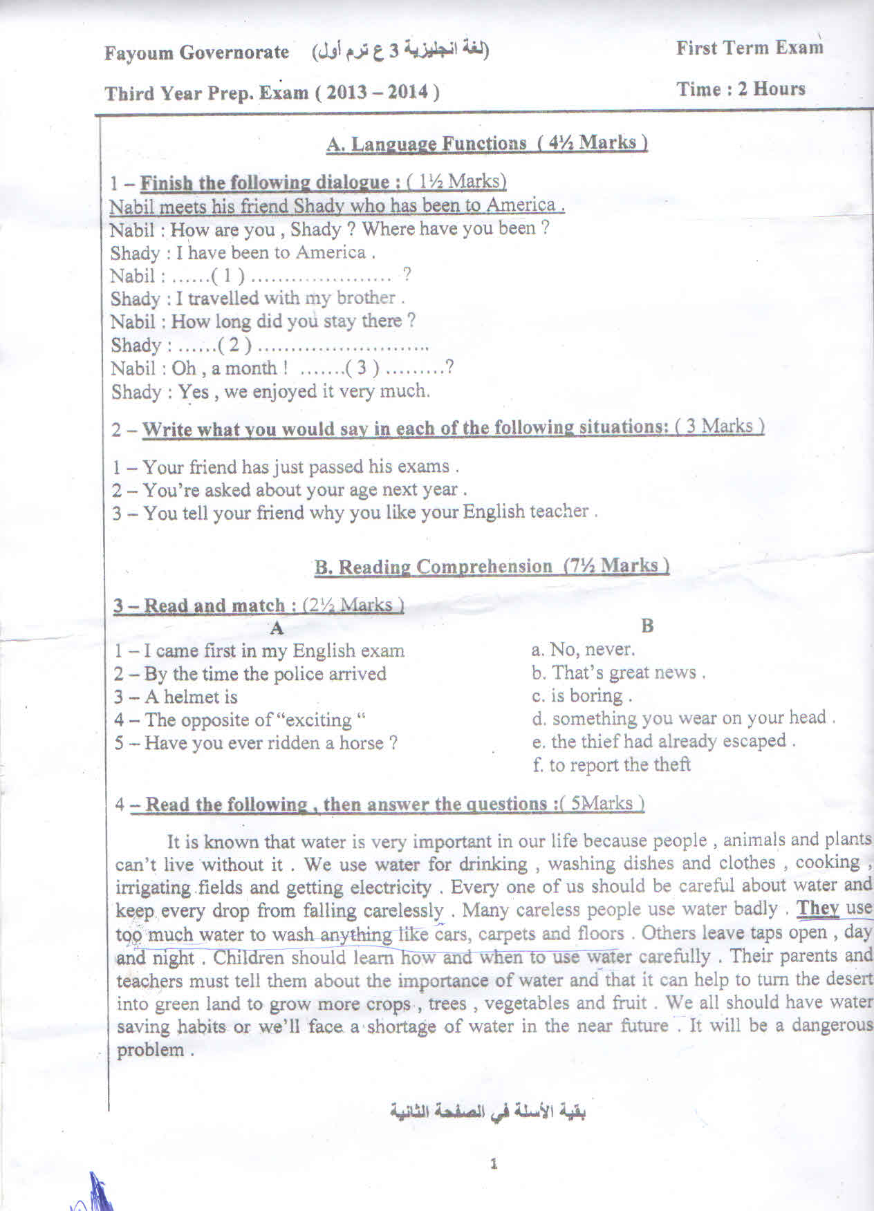 الى جميع زملائي الكرام امتحان محافظة الفيوم2014