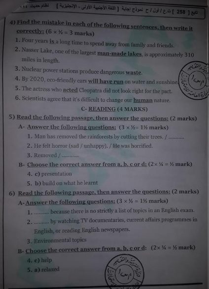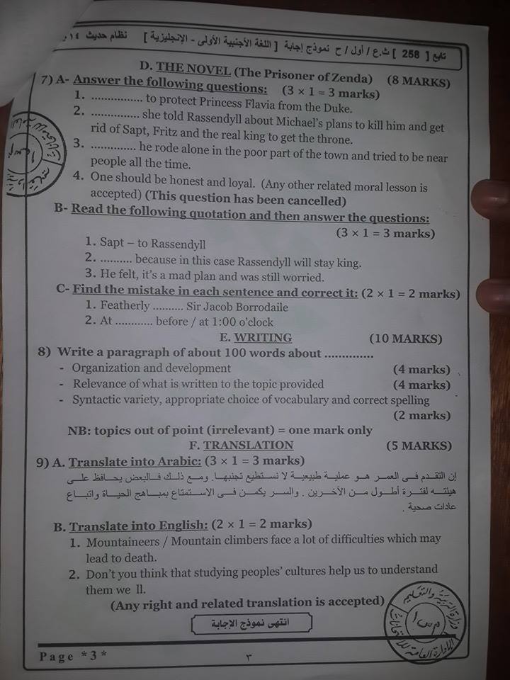امتحان اللغة الانجليزية ونموذج الاجابه 2014