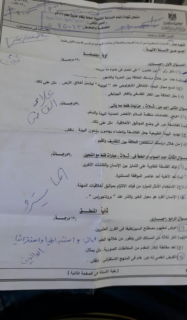 Exll امتحان دور ثان الفلسفة والمنطق 2016