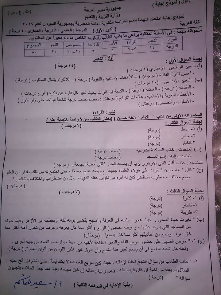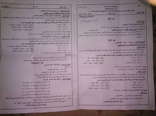 امتحان السودان + نموذج الإجابة(لغة عربية)