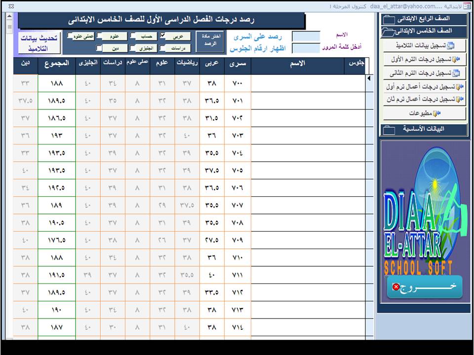 صور برنامج كنترول للصف الرابع والخامس الابتدائى