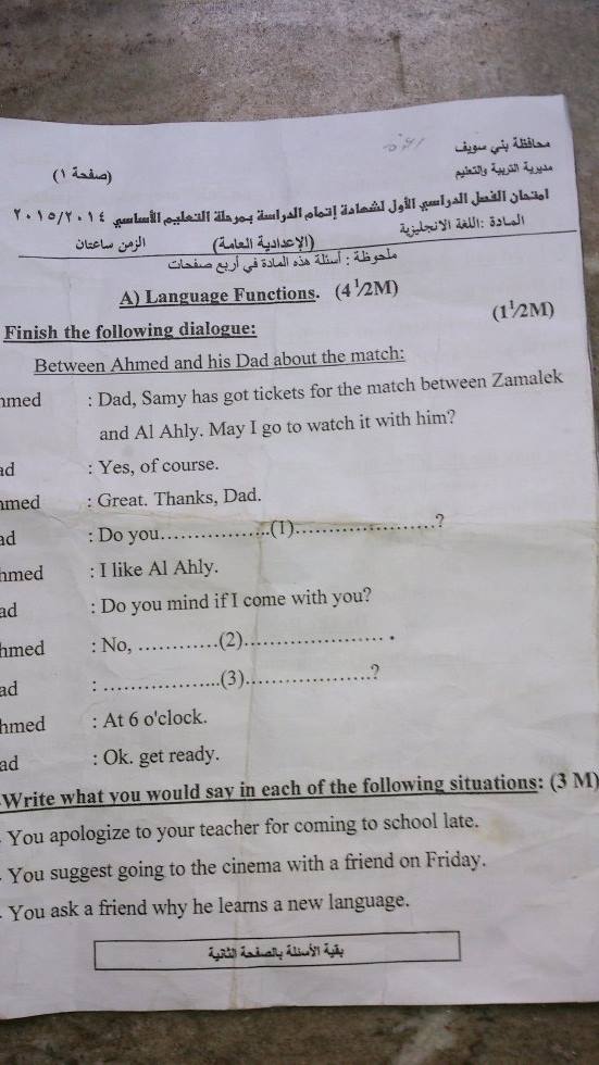 من أفضل الامتحانات للشهادة الإعدادية التي رأيتها حتى الآن