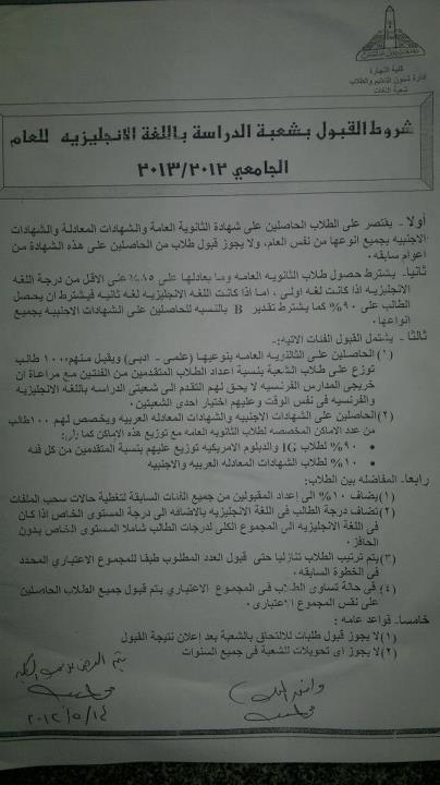 دي ورقه لشروط القبول بتجارة انجلش بالتوفيق