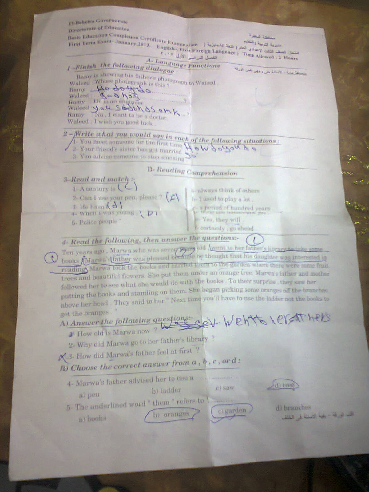 اهداء الى اعظم منتدى امتحان محافظة البحيرة 2013