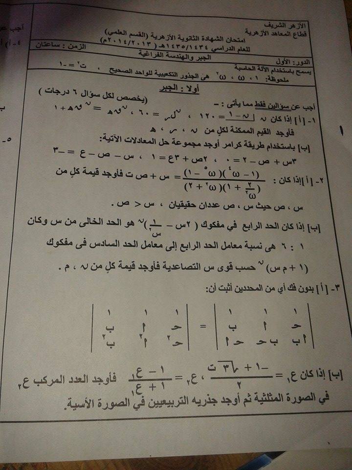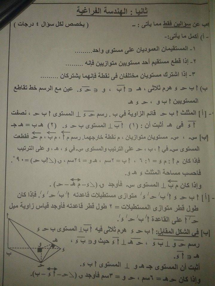 اقدم لكم امتحان الجبر والهندسة الفراغية للقسم العلمي الشهادة الثانوية
