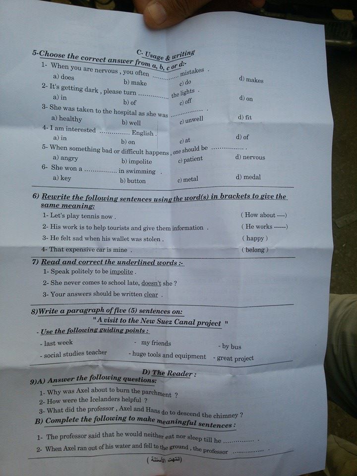 العودة   بوابة الثانوية العامة المصرية > المرحلة الاعدادية > الفصل الدراسى الأول > الصف الثالث الاعدادى > اللغة الانجليزية 3 ع ترم 1 > اللغة الانجليزية 3 ع ترم 1 (سنوات سابقة)