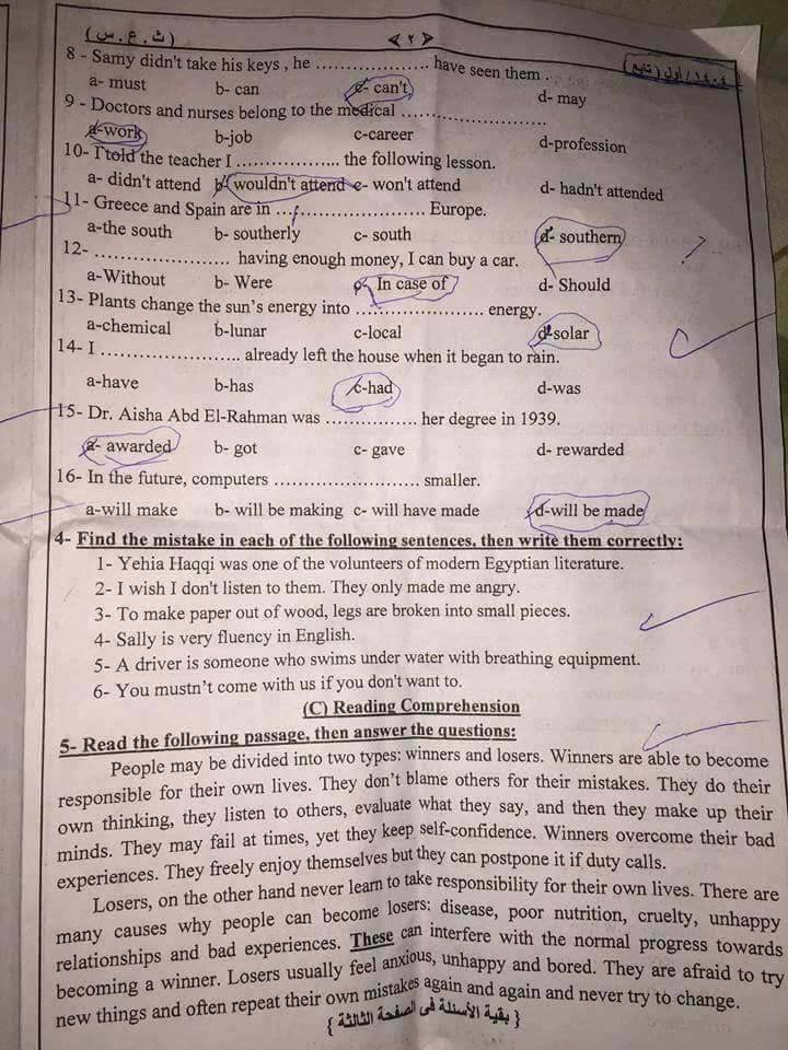 افتراضي امتحان السودان ٢٠١٨ الورقة الثانية الثالثة