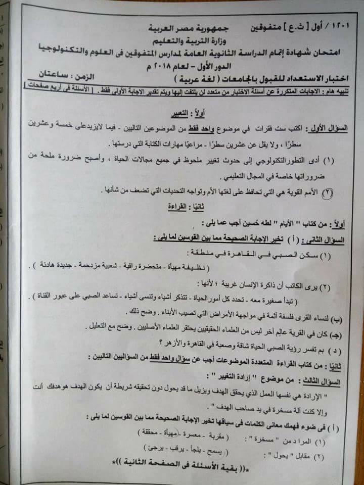 افتراضي امتحان مدارس الفائقين لغه عربيه