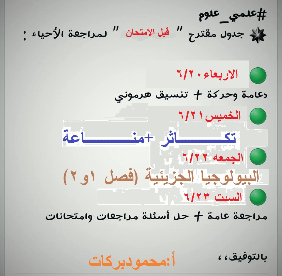 جدول مراجعه قبل ايام الامتحان
