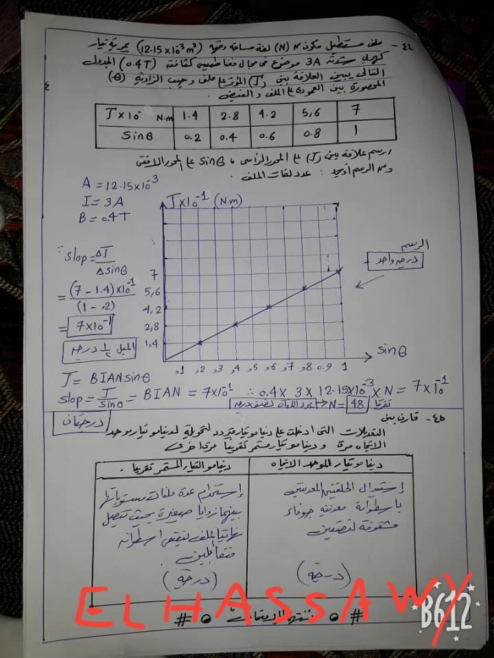 في اعتقادي ان مسئلة الدينامو ... لو الطالب اعتبر ان دوران الملف حول محور موازي لعرضه هيكون نصف القطر 0.15 وبالتالي السرعة الزاوية 209.5 والتردد 33.33 اكيد ده ميمنعشي ان اجابة حضرتك صحيحة وهي دي اللي يقصدها .. لكن أخطا في عدم تحديد كيفية دوران الملف