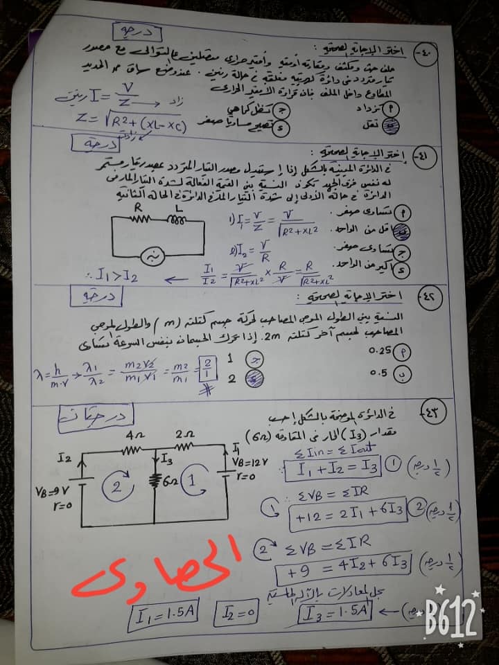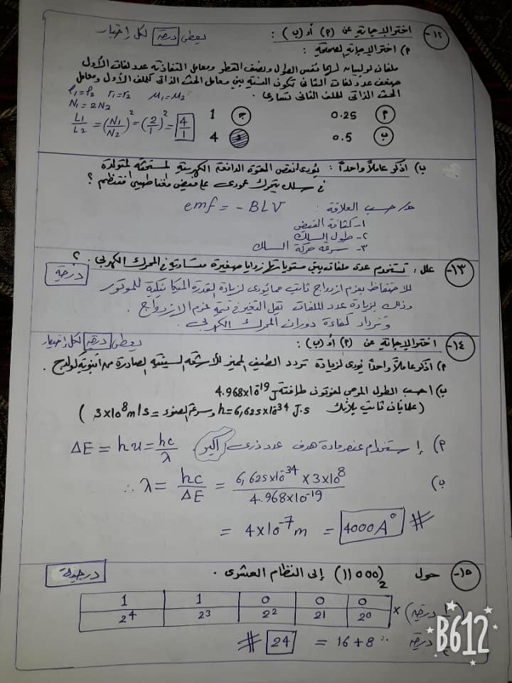 افتراضي تابع اجابة امتحان الفيزياء بالدرجات 2018
