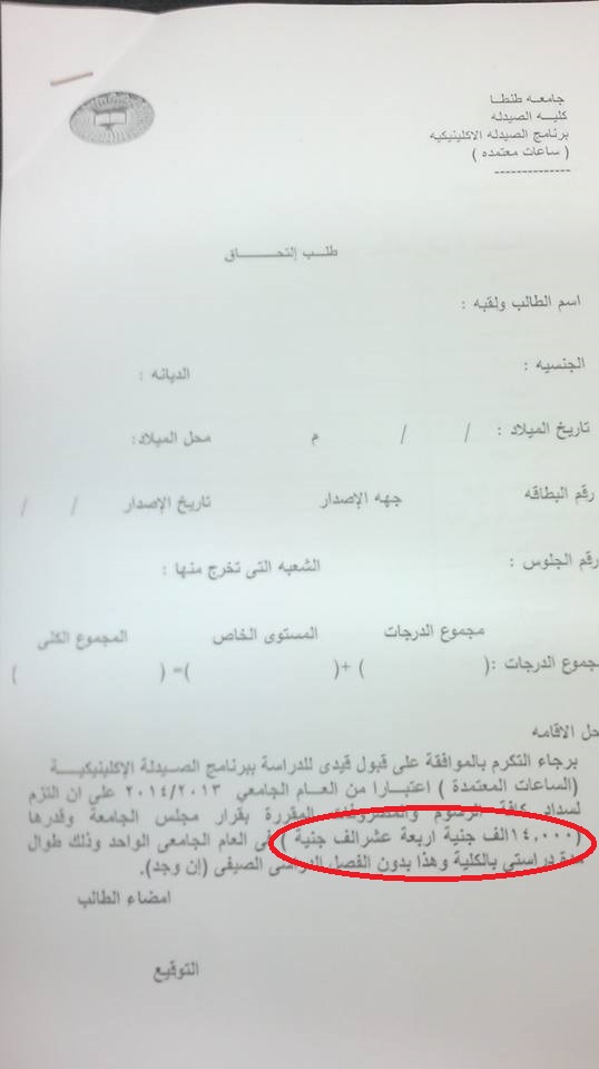 #أسرة_أدرينالين | #إرتفاع مصاريف برنامج الساعات المعتمدة علي الطلبة الجدد فقط لتصبح 14 ألف جنيه في السنة بدلا من 10 آلآف جنيه !!! __________________________________ صفحتنا علي الفيس بوك Adrenaline Family-FPTU المصدر في الصورة |