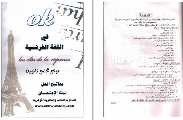 ليلة امتحان اللغة الفرنسية للثالث الثانوى عام وازهر وكل مفاتيح الحل من كتاب اوكى ok للفرنساوى