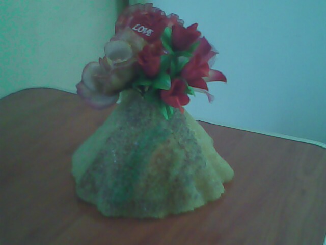 دى بقى عباره عن بتاعه كده شبه الزجاج هى بتاعت العروسه بتاعتى بس الحمد لله انا بوظتها المهم انا لونتها وحطتلها ورد وبقيت حلوه تقريبا