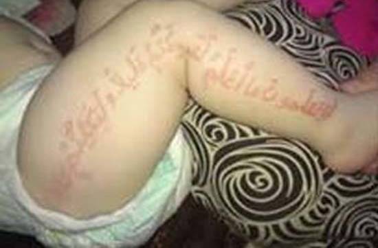 التلفزيون الروسي يعرض الطفل المسلم الذي تظهر على جسمه آيات وأحاديث عرض التلفزيون الروسي في نشرة الأخبار الرسمية تقريراً عن الطفل المسلم الذي تظهر على جسمه آيات وأحاديث شريفة .. وكانت وسائل الاعلام الأجنبية قد تناقلت يوم 22 أكتوبر خبراً مفاده أن رضيعاً في مدينة Kizlyar الروسية عمره تسعة شهور ظهرت على ساقه آيات قرآنية وأحاديث مما آثار ضجة كبرى محليا. وإسم الرضيع علي ياكوبوف( Ali Yakubov)، وقالت أمه الى المراسل ان الآيات القرآنية ظهرت على ساقه .وفي البداية، ظنت انها وحمة فقط، ولكن، ظهرت حروف عربية حتى جملة كاملة بعد الأيام. وقال زعيم ديني محلي، إن آية “الحمد لله رب العالمين” القرآنية كانت مكتوبة بلون قرنفلي على ساق الرضيع اليمنى بخط عربي يمكن قراءته بوضوح.والأمر الأكثر إثارة للدهشة هو إنها آيات قرآنية وتظهر في يوم الإثنين والجمعة فقط! وقالت والدة علي ان الرضيع يبكي ولا ينام مع الحمى عندما يبدأ أن تظهر الآيات القرآنية في الليلة. وسينتهي ألم علي بعد ظهورها التامة صباحا. وحتى الآن هناك أكثر من 2000 من شخصاً يأتون يوميا لرؤية هذا “الرضيع المعجزة”، وبعضهم يأتون كل يوم لمشاهدة تغيير الكلمات معذرة انظر الصور فى المرفقات