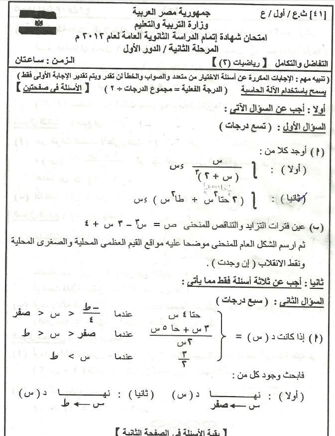 ![]() إلى اعزائى طلبة وطالبات الثانوية العامة المصرية نقدم لكم امتحان التفاضل 2012 ونموذج الاجابة الخاص به امتحان التفاضل والتكامل للثانوية العامة 2012 حمل نموذج الاجابة من هنا مع تحياتى |