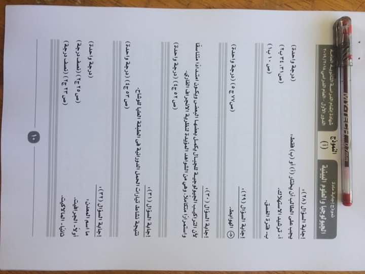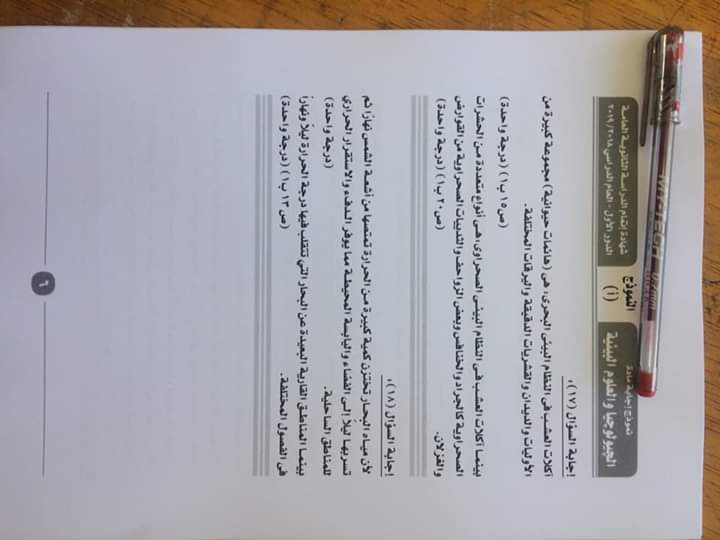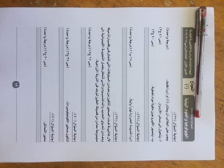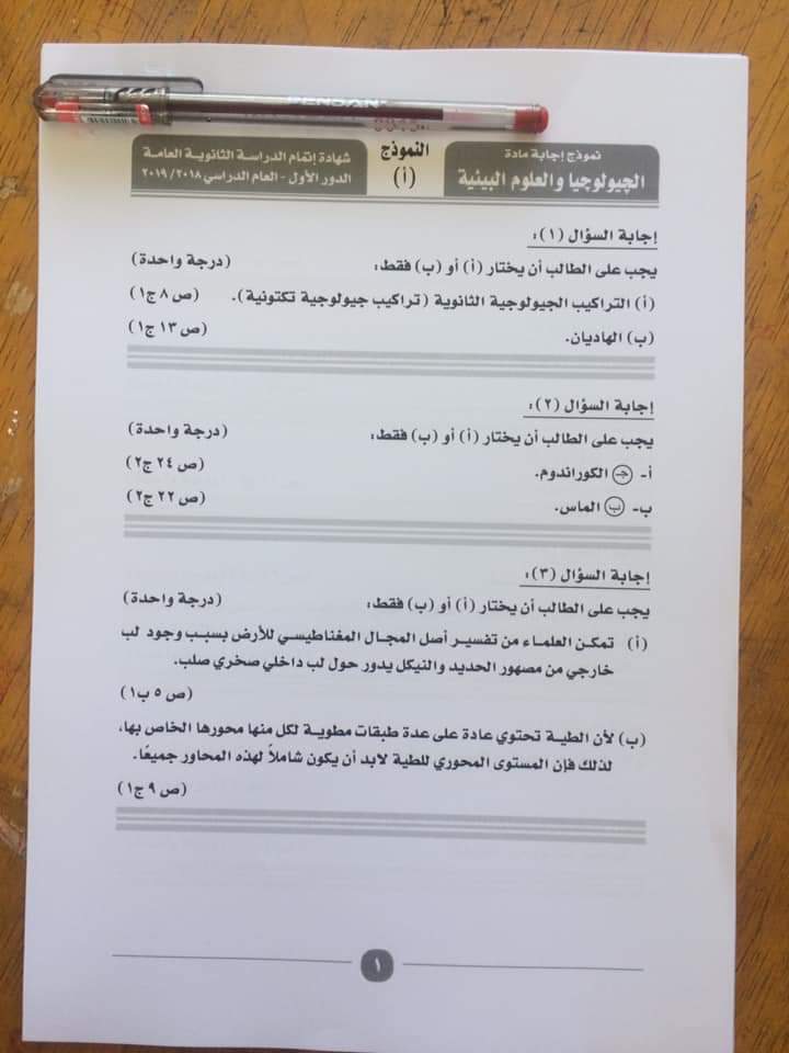 Exll باقي نموذج الإجابة الرسمي وتوزيع الدرجات لامتحان الجيولوجيا والعلوم البيئية 2019