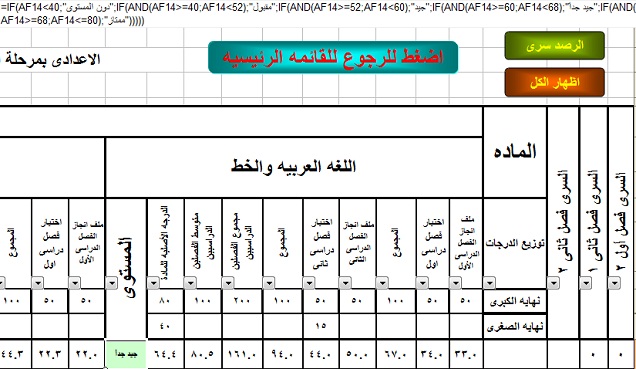فعلا كل المعادلات مفتوحه لكل الشيت عدا الشهاده والاحصاء ( حتى اذا حبيت تغير فى شيت نصف السنه أو الرئيسى أو فى بيان درجات نصف العام أو آخر العام وتغير اى تنسيق فيهم فغير براحتك ................اما المعادلات فهى مفتوحه لمن يريد ان يتعلم ويعرف ويناقش وهكذا .......)