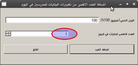 في حالة رغبتك تطبيق هذا الخيار لبعض المدرسين فقط وليس لكل المدرسين اختر"الحد الأقصى لتغيير البنايات في اليوم لمدرس" ثم اضف المدرسين واحداً واحداً