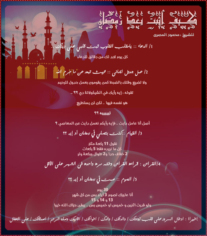 ده بوستر فى بعض الاعمال عشان تثبت بعد رمضان وربنا يتقبل منا ومنك