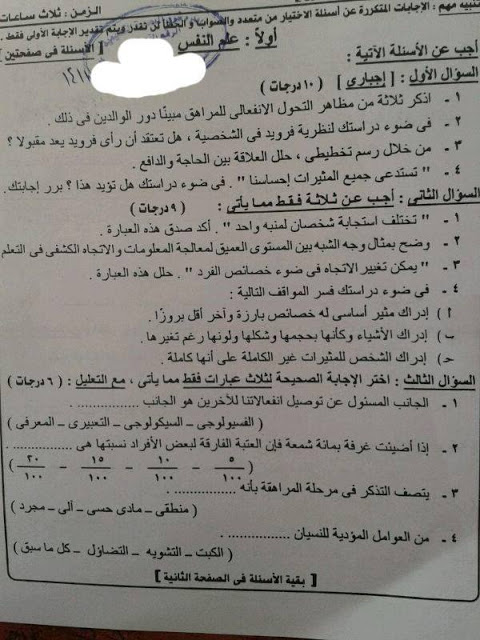 العودة   بوابة الثانوية العامة المصرية > الصف الثالث الثانوي 2024 / 2025 > مجموعة المواد الدراسية ( لا تضاف للمجموع ) > علم النفس والاجتماع الصف الثالث ث > المراجعات والامتحانات علم نفس و اجتماع 3 ث