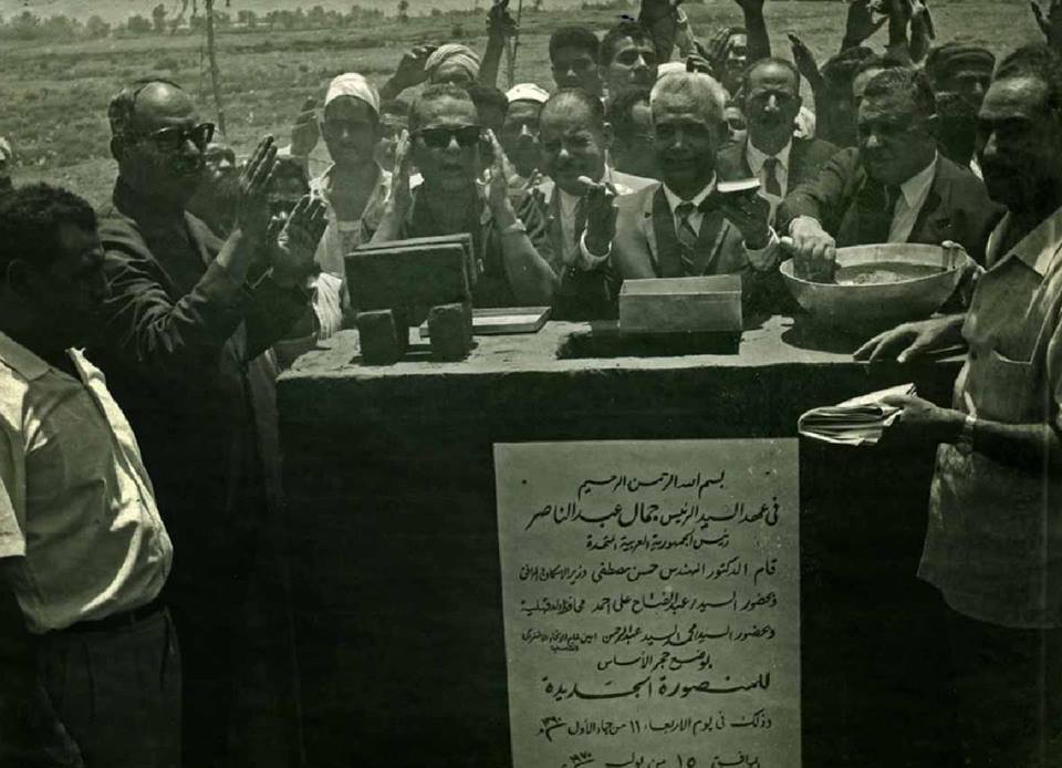 وزير الاسكان والمرافق الدكتور مهندس حسن مصطفي يضع حجر الاساس لمدينة المنصورة الجديدة في 15 يوليو 1970 م في عهد الرئيس جمال عبد الناصر