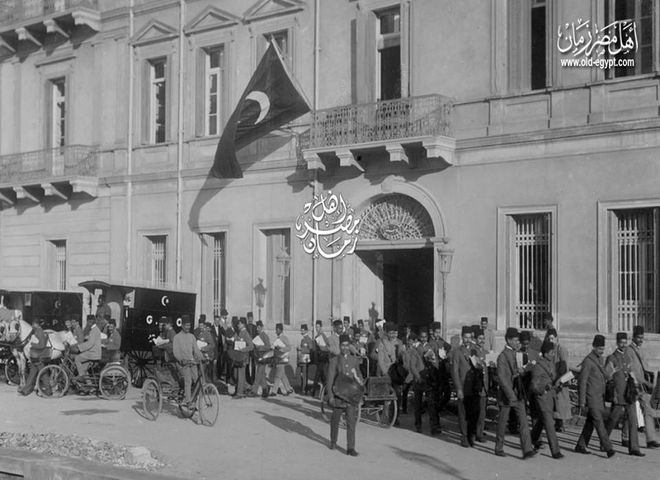 البوسطجية في طريقهم الي عملهم - هيئة البريد العمومية في ميدان الاوبرا بالقاهرة سنة 1912 ..