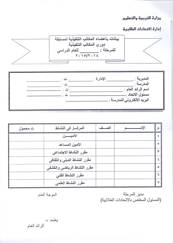 حد عنده نشره مسابقة المكاتب التنفيذية للعام2014/2015