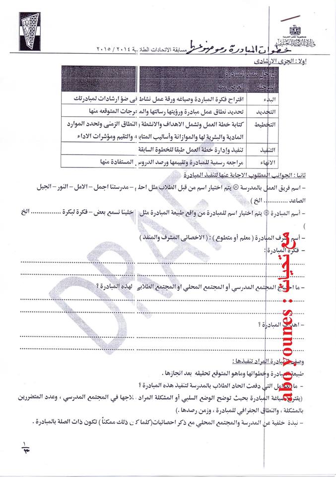 أنا عايز مبادرة للاتحادات اللي هى موضوع المسابقة