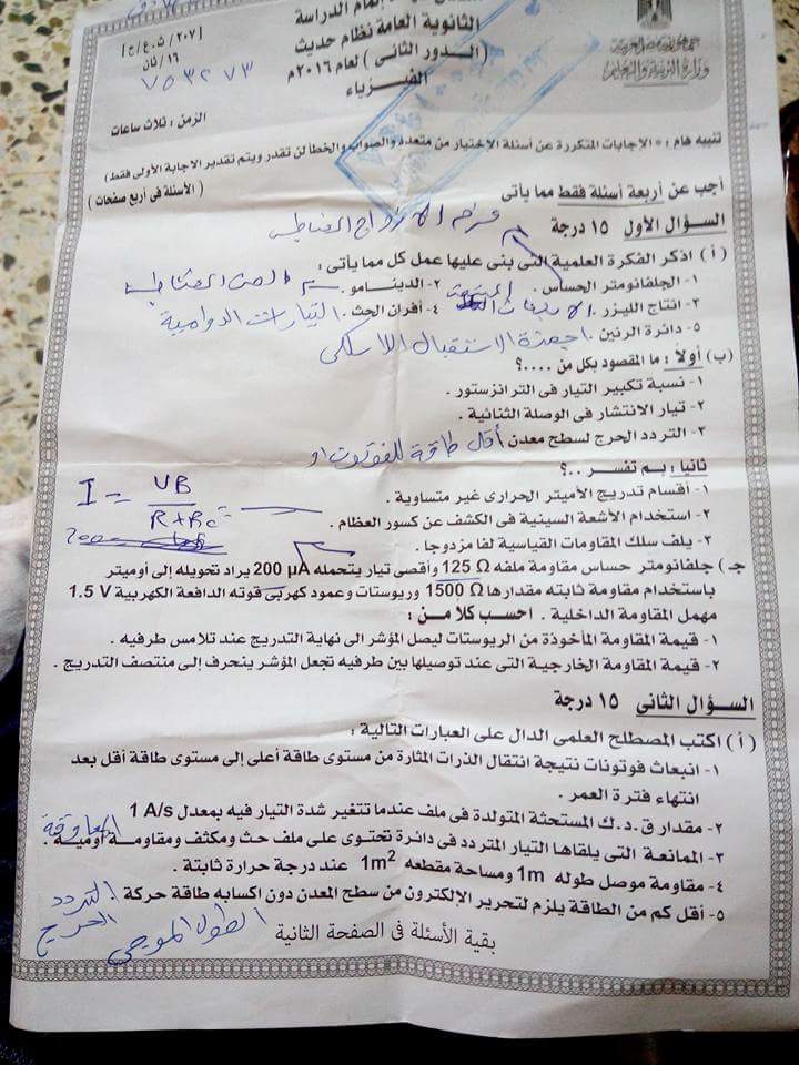 امتحان مصر الدور الثانى فيزياء 2016 كان يليق ان يكون هذا هو امتحان الدور الاول ولكن واضح جدا ان دائما فية جديد فى مسائل كيرشوف وعلى جميع زملائى معلمى الفيزياء الاهتمام بمسائل كيرشوف