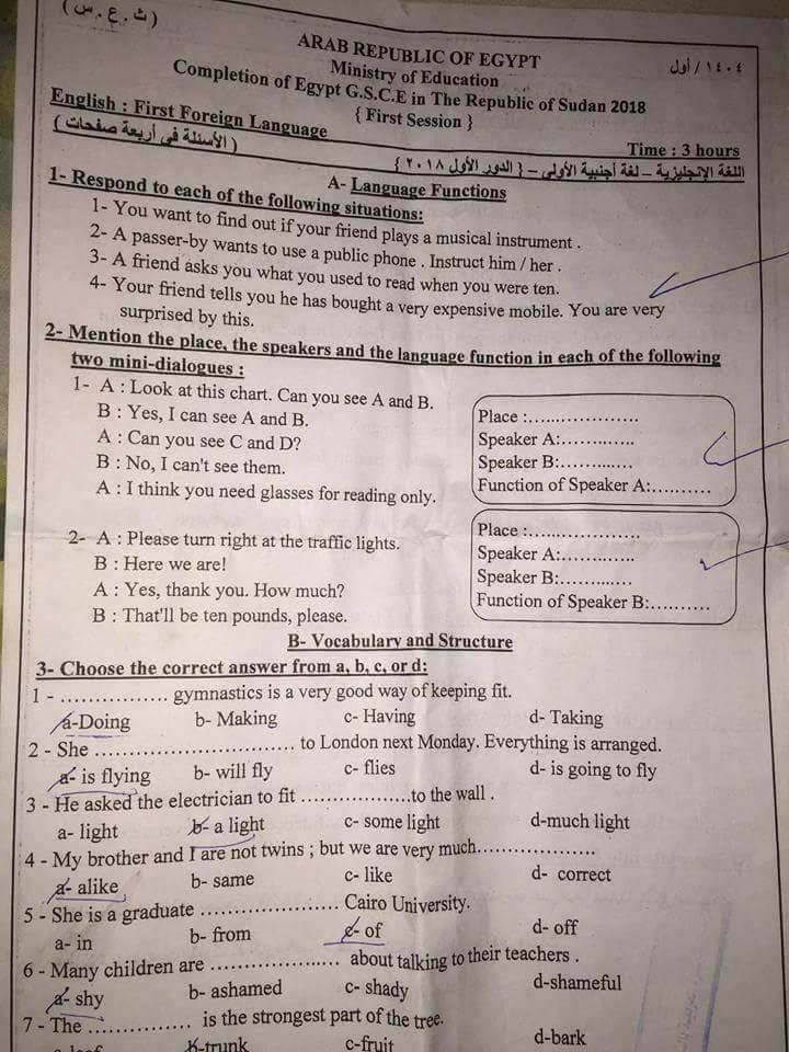 افتراضي امتحان السودان ٢٠١٨ الورقة الاولي