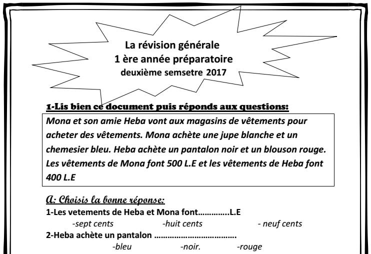 في 3 ورقات مراجعة لغة فرنسية الفصل الدرسي الثاني 2017 اعداد ا/ ايهاب زقزوق منهج Bienvenue الصف الاول الاعدادي ![]() للتحميل اضغط على الرابط ثم Skip Ad يبدأ التحميل مباشرة من هناااا http://g5u.pw/t/2xVA او من هناااا http://adyou.me/lUox |