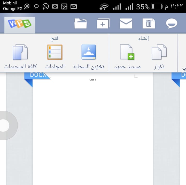 نزلوا من المتجر تطبيق Kingsoft office وصورته تحت الخبر هتلاقى أنه بيخليك تعمل ملفات منها الوورد اضغط عليه وبعد فتح الوورد تعمل انشاء ملف جديد من الضغط على علامة + ثم مستند جديد