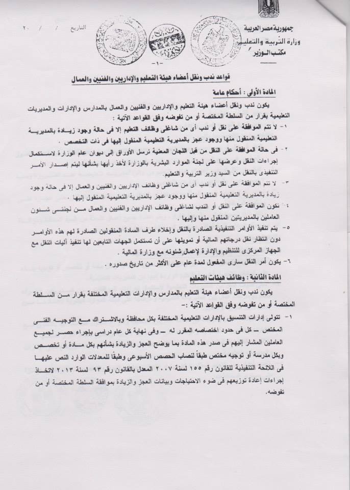 قرار 202 الخاص بقواعد النقل والندب والذى أثار ازمة بسبب رفض الوزارة وضعه على بوابتها لعدم تمكنها من تنفيذه بسبب انه سيعيد تسكين المدرسين والموظفين وسد العجز فى اماكن العجز وهو تمكنت من تجميعه صور حمل واطبعه وباقة ثلاث صور سأرفعها فى تعليق