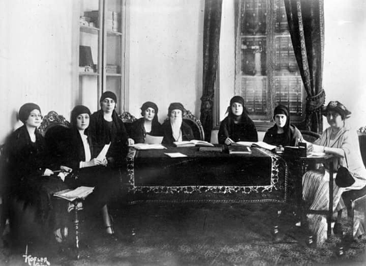 صورة للسيدة هدي شعرواي برفقه اتحاد نساء مصر الذي تشكل عقب ثورة سنة 1919 .