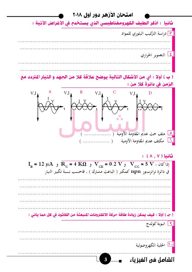 تابع امتحان الازهر 2018 اهداء من ا/ محمد الباسل