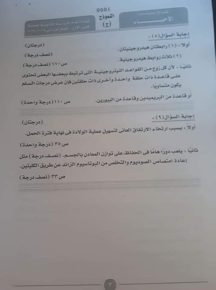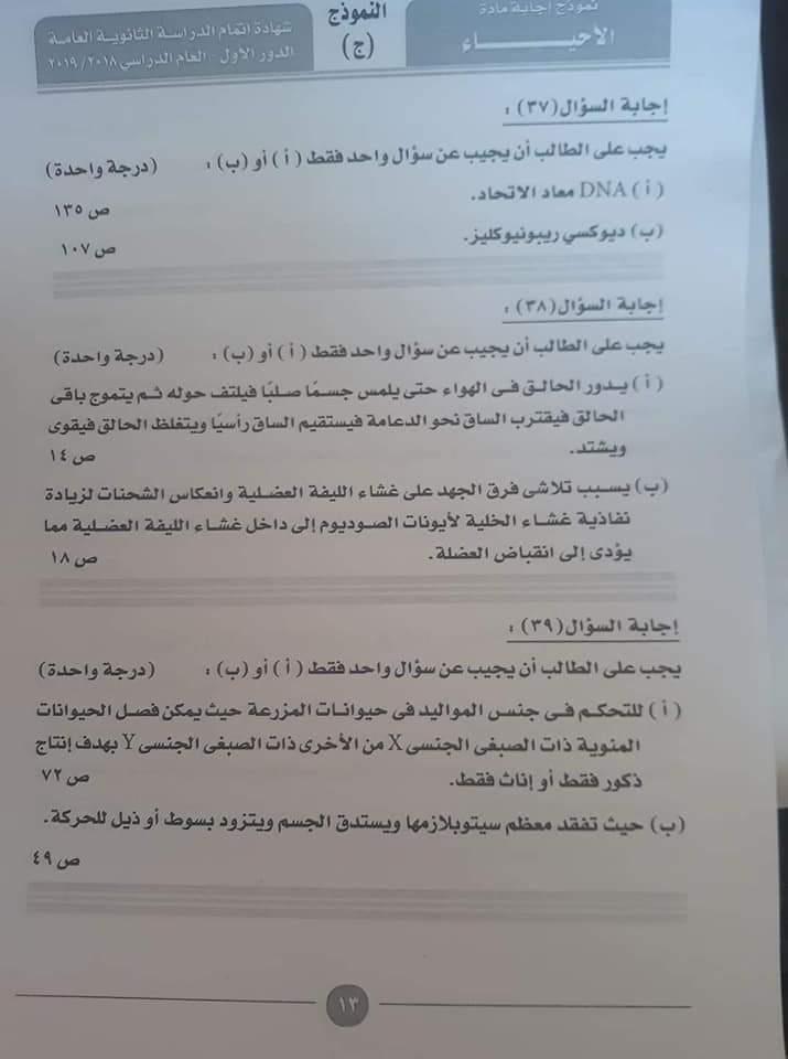 Exll باقي نموذج الإجابة الرسمي وتوزيع الدرجات لامتحان الأحياء للثانوية العامة الدور الأول 2019